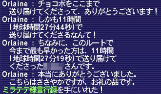 先週、ちらっとサンド→ジュノをやってみたのですが、このルートだと最速でも魔行符しか貰えないらしく、ミラテテを貰うにはサンド→ウィンなど30分近く掛かるルートを通らないとダメな模様。